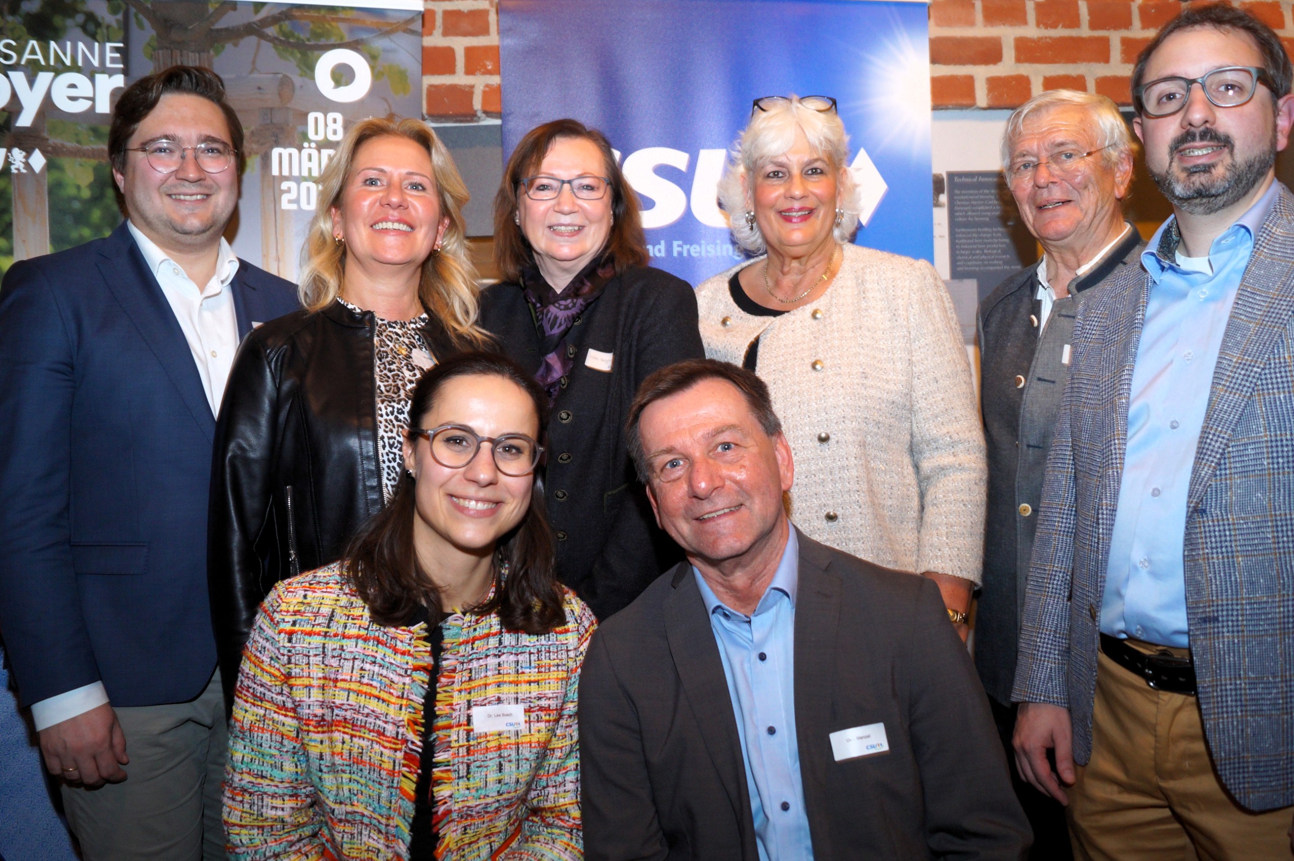 Auf dem Gruppenbild von links hinten zu sehen: Christian Moser, MdB, Landratskandidatin Susanne Hoyer, FU-Kreisvorsitzende Silvia Bergmann, AKS-Kreisvorsitzende Kerstin Rehm, der Kreisvorsitzende der Senioren-Union Franz Donauer, Bezirksrat und designierter OB-Kandidat Freisings Simon Schindlmayr,